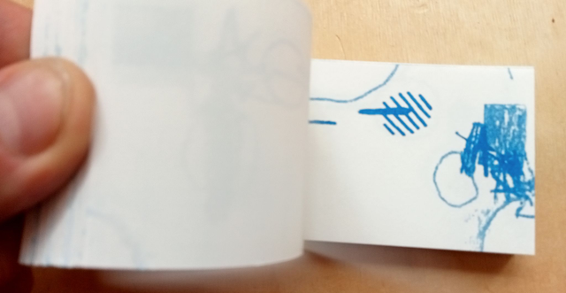 Flipbook improvisé à plusieurs mains par le collectif HsH durant l'exposition "Chenille" du 22 septembre au 29 novembre 2023 à la Fanzinothèque